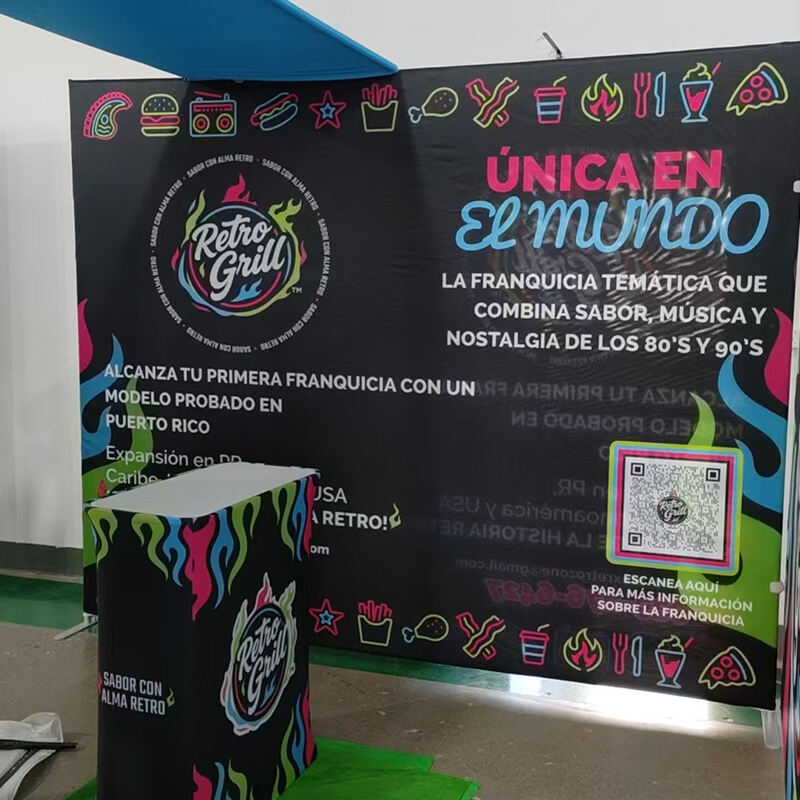 The graphic features bright colors and clear details, which can effectively attract the attention of visitors. Meanwhile, it supports personalized customization — brand logos, product images, event themes, and other content can be printed on it according to specific needs.