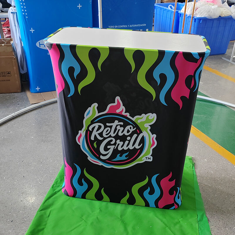 Graphic Material: Generally uses flexible elastic fabric. This kind of fabric is foldable, not easy to be damaged, and has good flexibility. It can fit flatly on the frame, presenting a clear and attractive graphic effect.