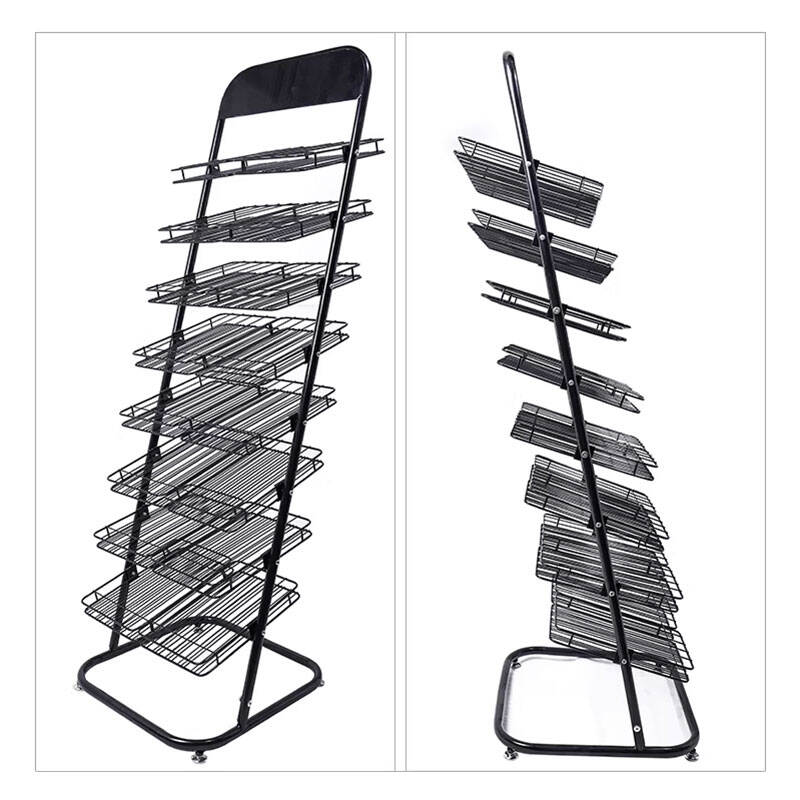 The frame is made of metal, with shelves connected to the stand via snap-on fasteners. It can be quickly assembled and disassembled without tools, and folds down to a compact size for easy transportation and storage—ideal for temporary events such as exhibitions and pop-up shops.
